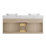 Take your bathroom to new heights with the beautiful, contemporary aesthetic of the Jacob Oak Console Bathroom Vanity. Offering abundant space for your necessities, the fabulous floating design is expertly crafted in a solid wood frame and perfectly protected in a moisture-resistant lacquer. It is not only stylish, but functional with its soft-close drawer system and spacious cabinets.